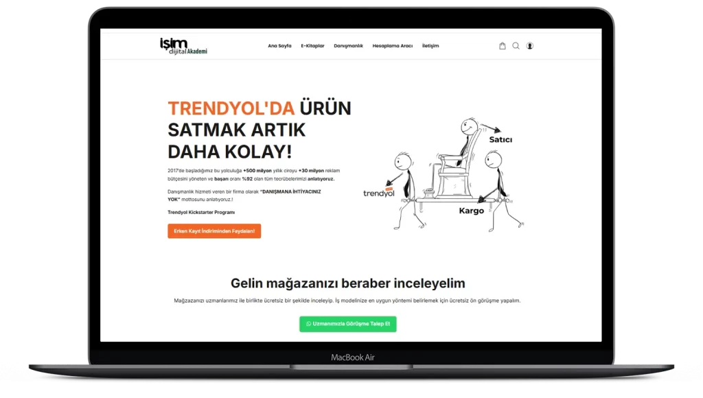 İşim Dijital Akademi için WordPress tabanlı bir eğitim satış sitesi kurduk. Bu platform, PayTR ödeme altyapısı ile güvenli ödeme imkanı sunarak online eğitim satın almanızı sağlar. Eğitimler, dijital pazarlama ve Trendyol üzerine odaklanmakta olup, ihtiyacınıza uygun üç farklı paket seçeneği sunulmaktadır.