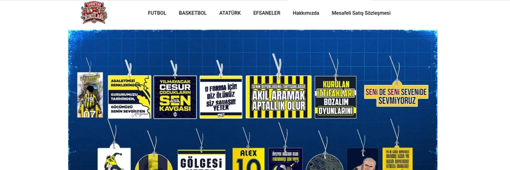 Taraftar Kokuları, taraftarların takımlarına olan bağlılıklarını her yerde gösterebilmeleri için araç kokuları tasarladığımız bir projedir. Her takıma özel kokular sunan bu platform, taraftarların araçlarında takımlarını yansıtabilmelerini sağlayan özel bir ürün alım sitesidir.